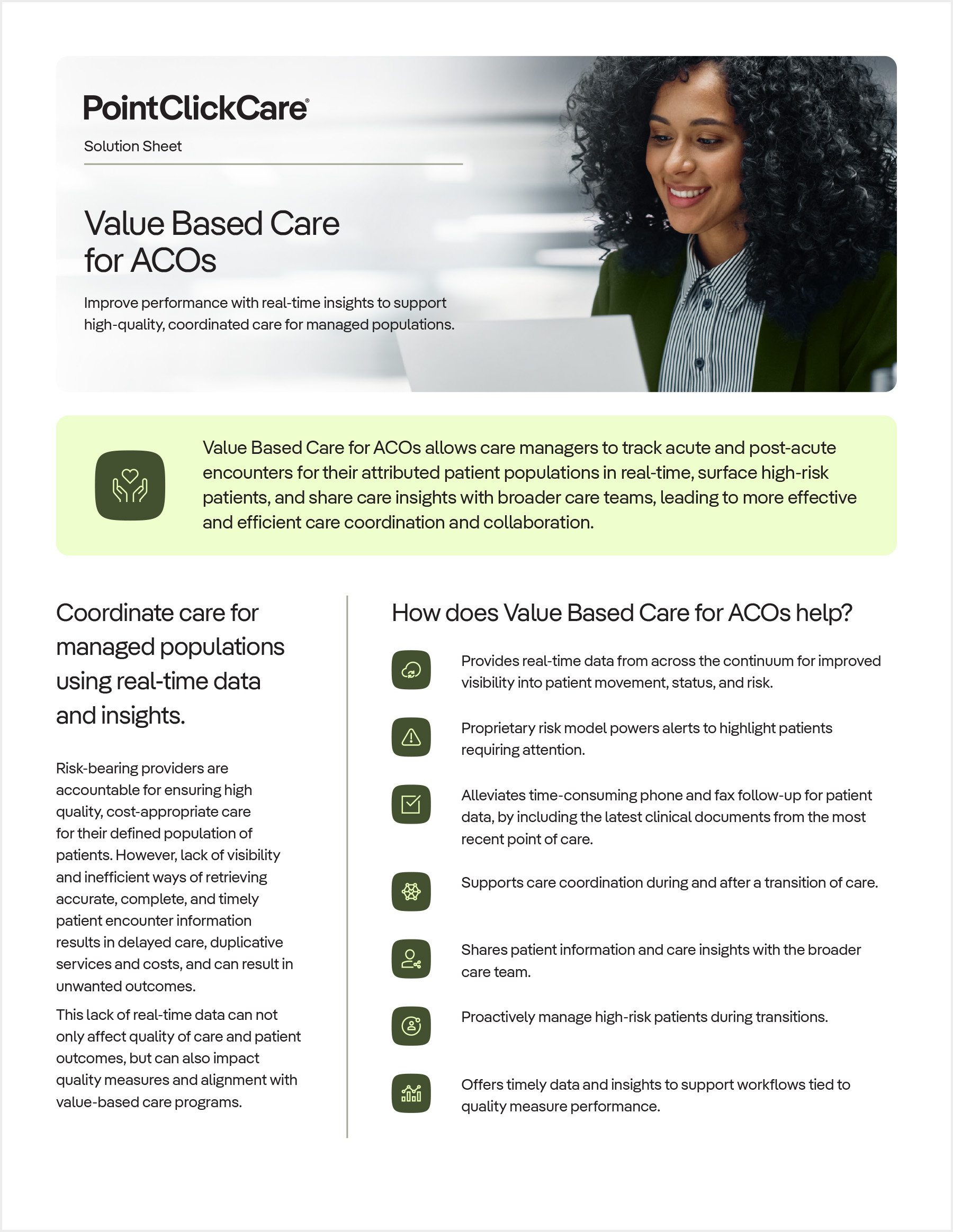 Value Based Care for ACOs offers a single system to track and manage patient populations as they move to other care settings.