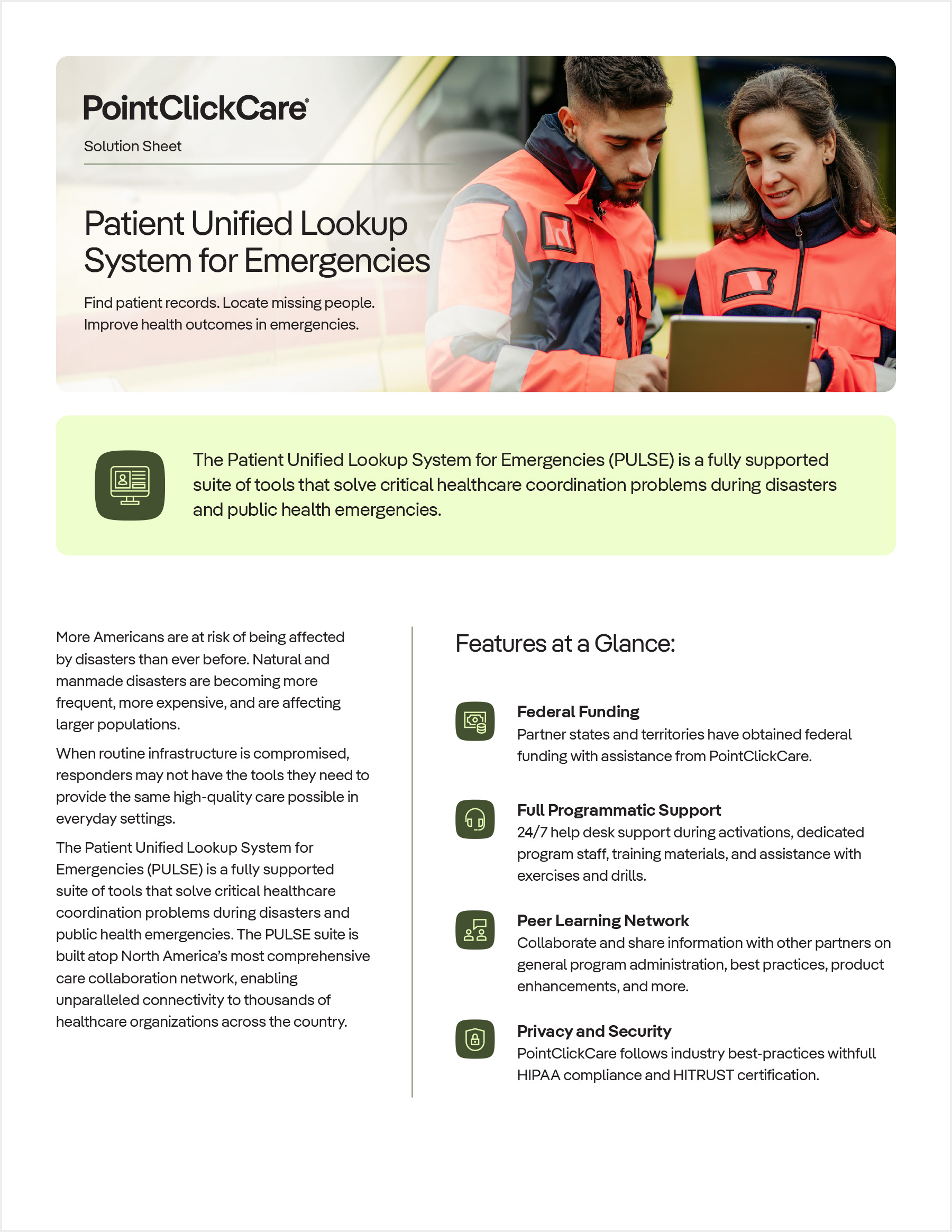 PULSE Enterprise is a fully supported suite of tools that solves critical healthcare coordination problems during disasters and public health emergencies.