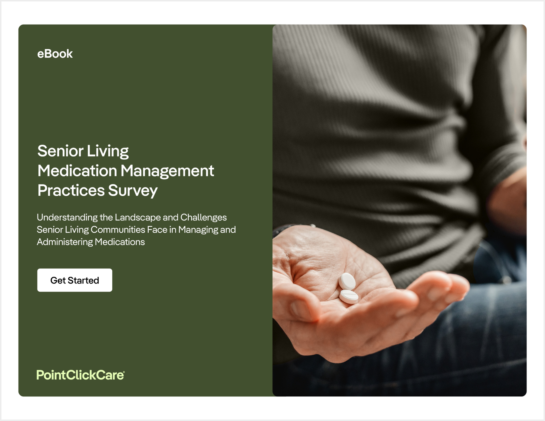 To better understand the challenges senior living communities face in managing and administering medications, PointClickCare conducted a survey of health and wellness directors, executive directors, clinical services directors, and other similar titles from senior living communities across the United States. Download our eBook to learn about the current state of medication management in senior living and the top challenges.